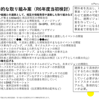 まちなかの再生に向けて今何をすべきか、自分たちで何ができそうか、過去のアイデアや今年度の具体な取り組み例も参考にしてアイデア出しを行いました。