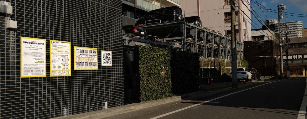 裏通りの壁面に社会実験や未来ビジョンに関するポスターを貼りました。